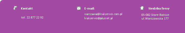 | Szeroką ofertę oraz profesjonalne przygotowanie służb handlowych, produkcyjnych i logistycznych P.W.G. Krakserwis, które liczą dzisiaj blisko 30 osób doceniają od lat nasi klienci. Jest wśród nich wiele firm zajmujących czołowe miejsca list największych przedsiębiorstw w Polsce. Przykładowo wymienię tylko kilka: Telekomunikacja Polska S.A., Bank Gospodarki Żywnościowej, Polska Telefonia Cyfrowa (Era GSM), PTK Centertel, Aventis Pasteur, Medicover, BRE Bank Volkswagen Bank Polska, Mobl Oil, Eden Springs Poland, Stolica, Orlen Oil, Gaspol S.A. Polskie Składy Budowalane, Zrew, Johnson&Johnson Poland, Stalprodukt, Kopalnia Soli Wieliczka, Comarch S.A., TELE-FONIKA, UPC i wiele innych. |